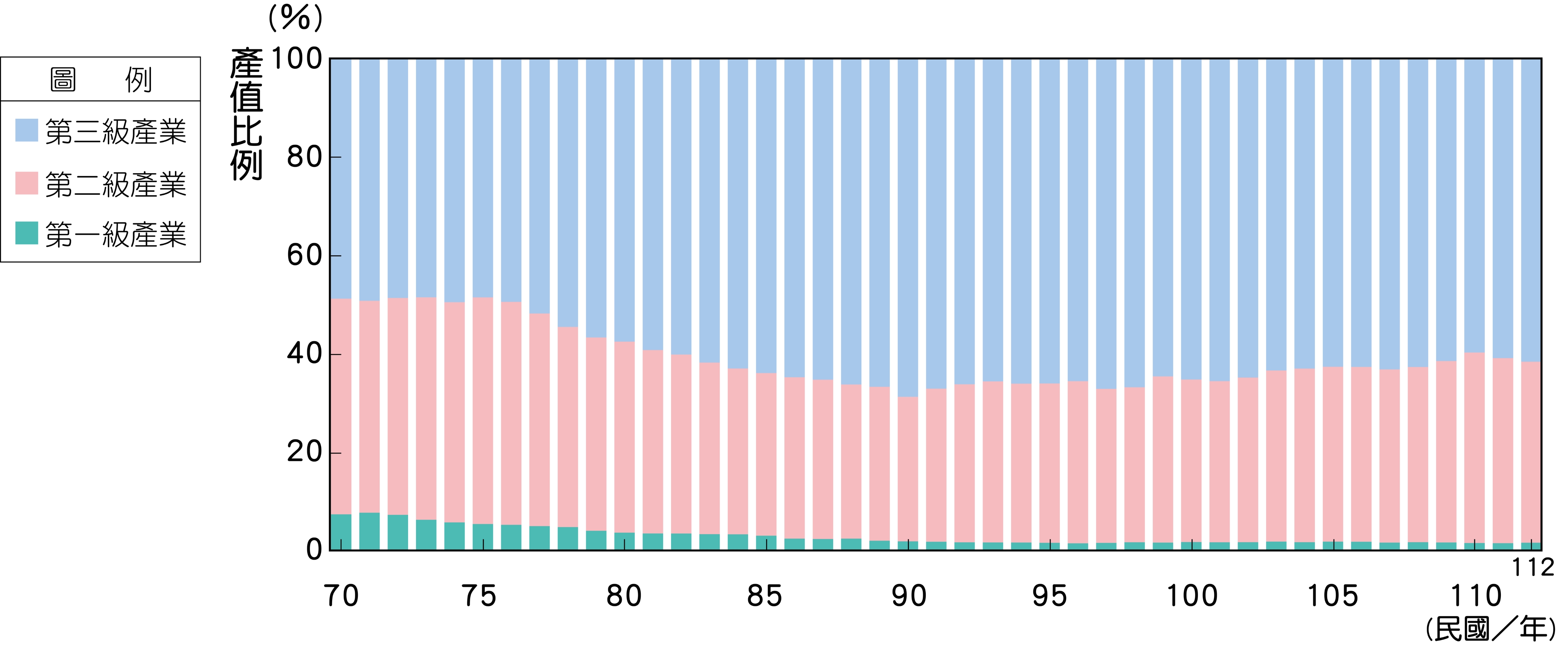 1-3-05_臺灣歷年三級產業的產值比例變化圖(民國70-112年)