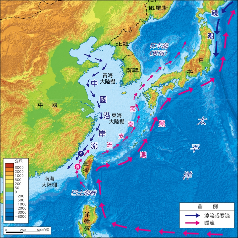 1-3-19_臺灣附近的海底地形與洋流示意圖