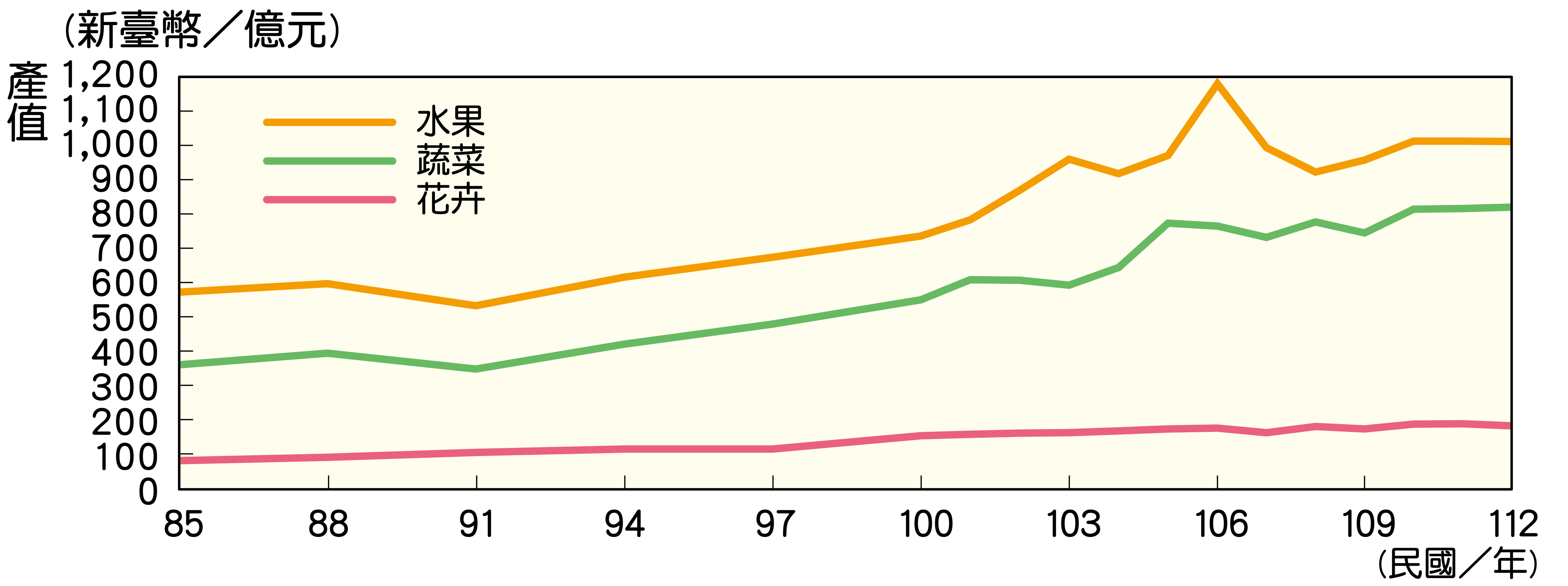 1-3-12_臺灣蔬果花卉產值變化圖(民國85-112年)