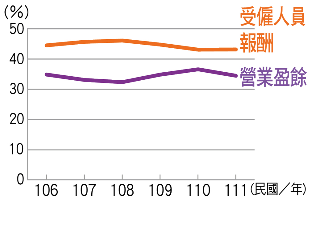 3-5-5_受僱人員報酬及營業盈餘占國家總經濟生產的比重圖