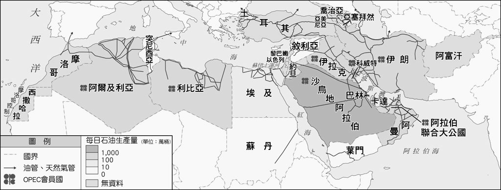 1-4-5_西亞與北非主要產油國與每日石油生產量