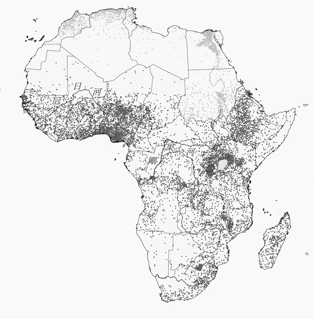 1-5-13_漠南非洲人口分布圖(西元2023年)