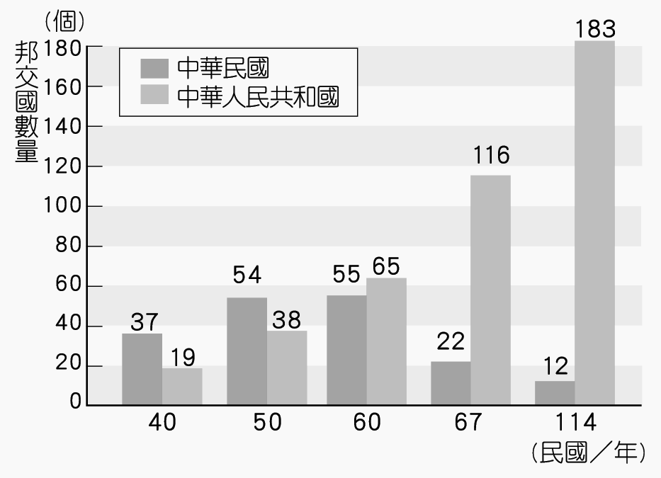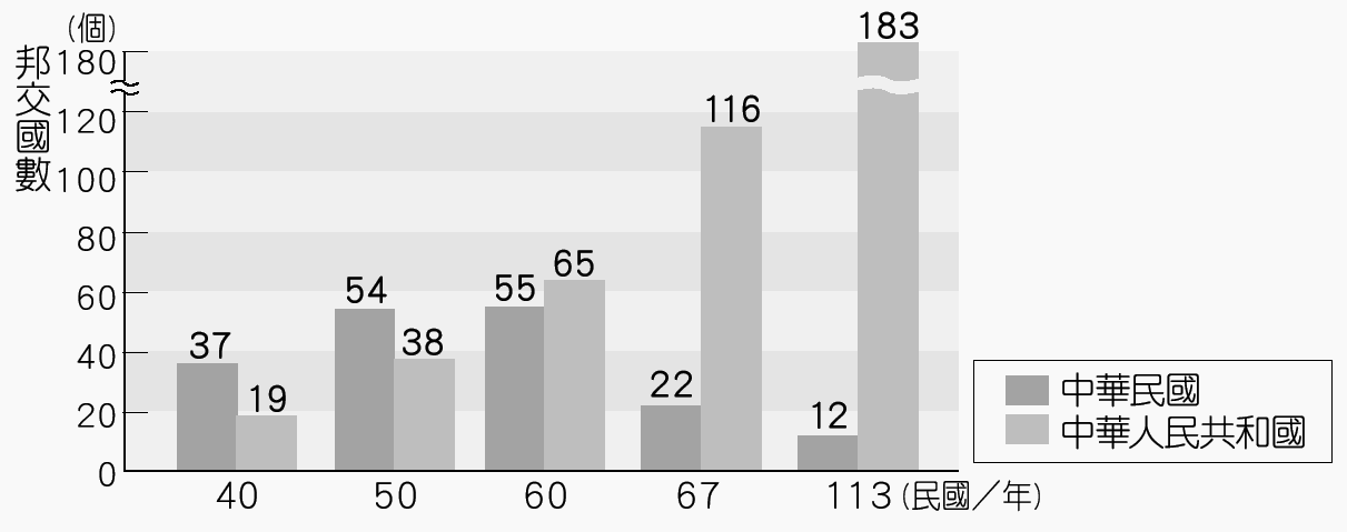 2-5-8_我國與中華人民共和國邦交國數目的變化圖(截至民國113年1月)