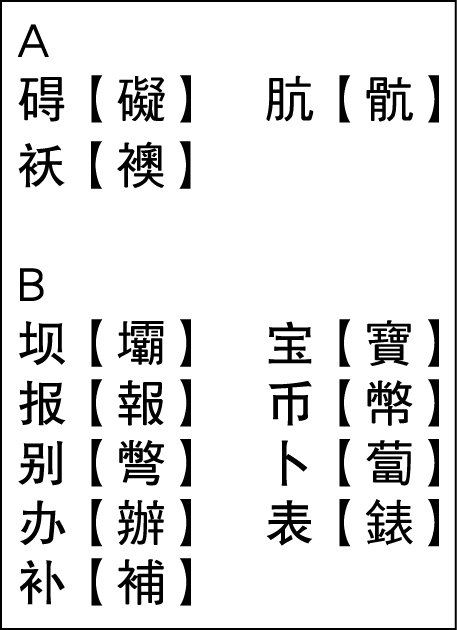簡體正體對照文字表