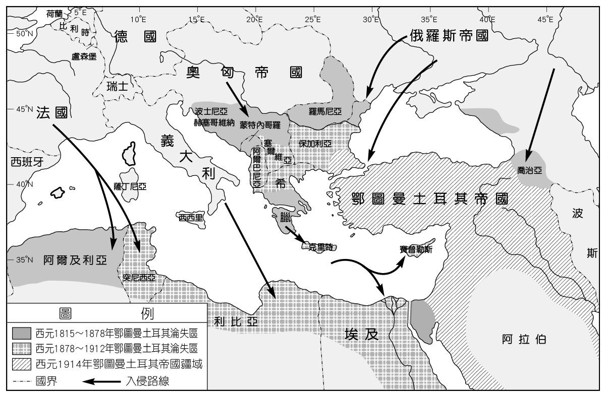 第一次世界大戰前夕鄂圖曼土耳其帝國受侵圖