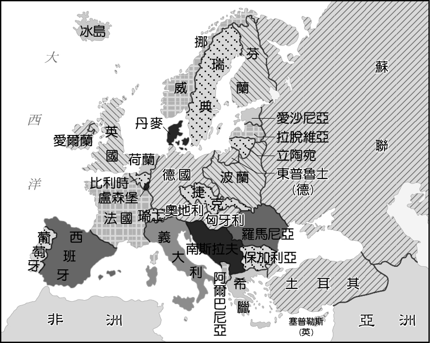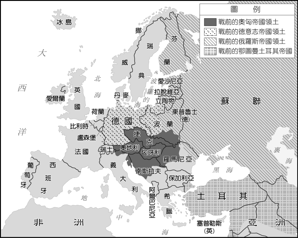 一次大戰後歐洲各國形勢圖