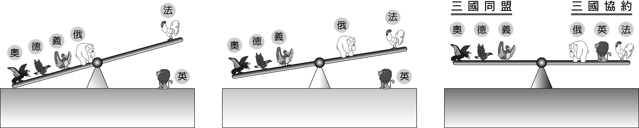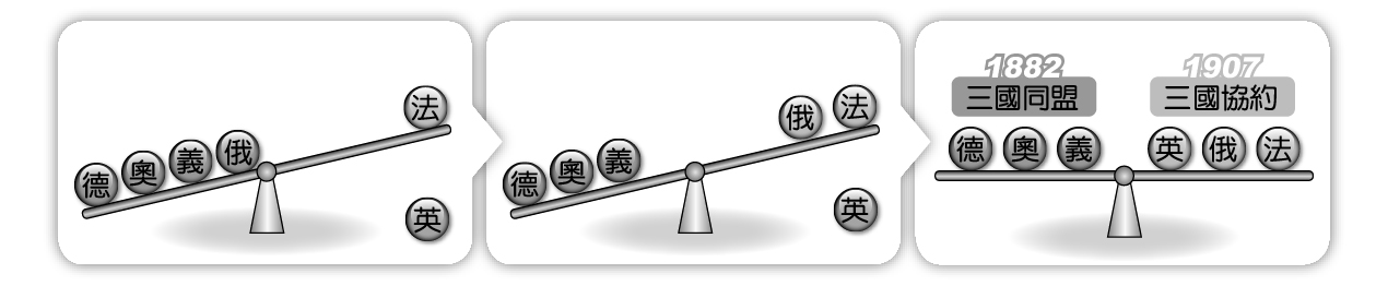 三國同盟、三國協約形成示意圖