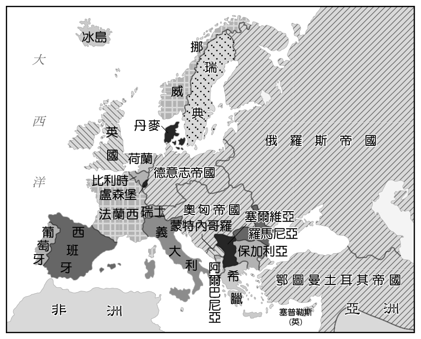 一次大戰前歐洲各國形勢圖(空白無代號)