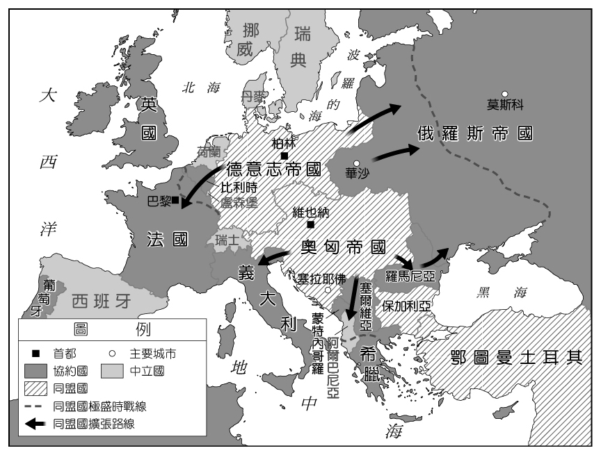 一次大戰前歐洲各國形勢圖