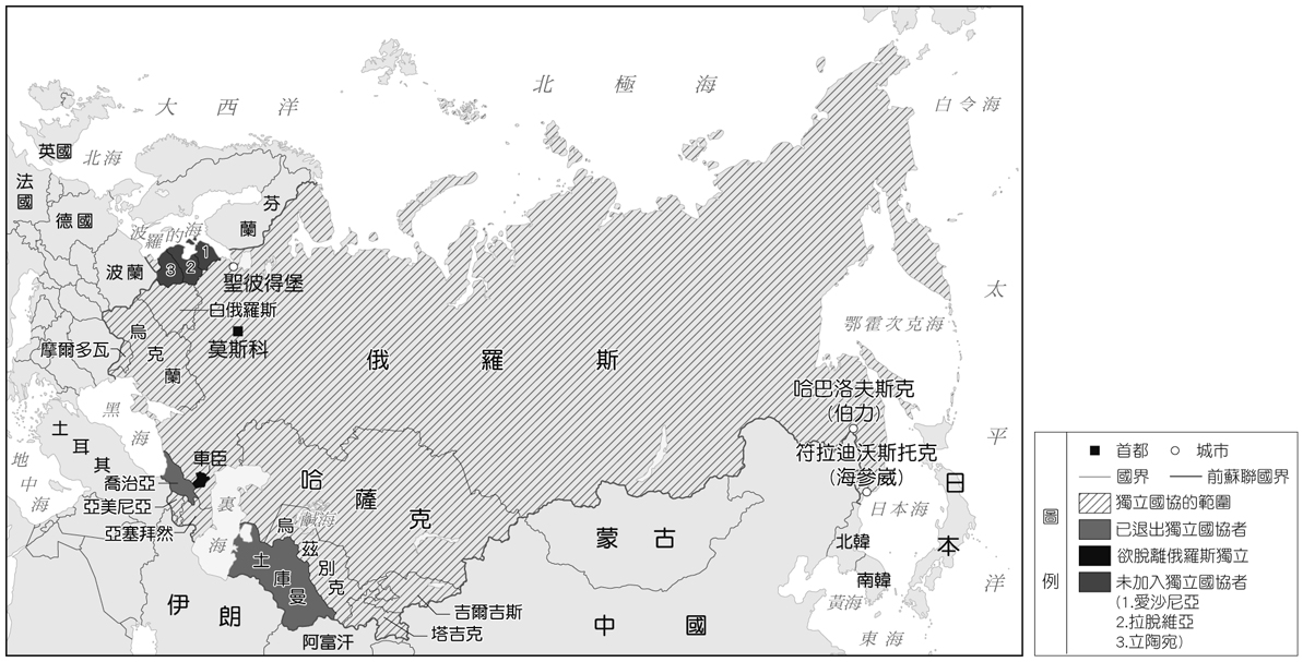前蘇聯疆域與獨立國家國協範圍比較圖