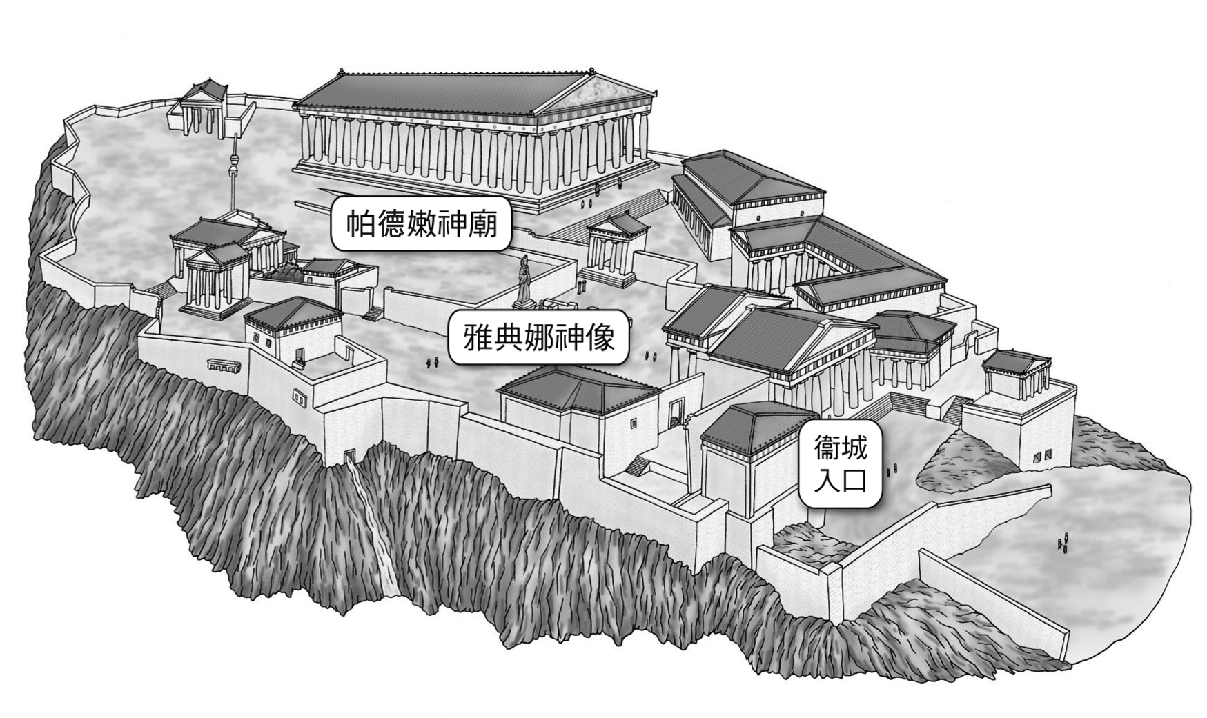 西元前五世紀末的雅典衛城示意圖