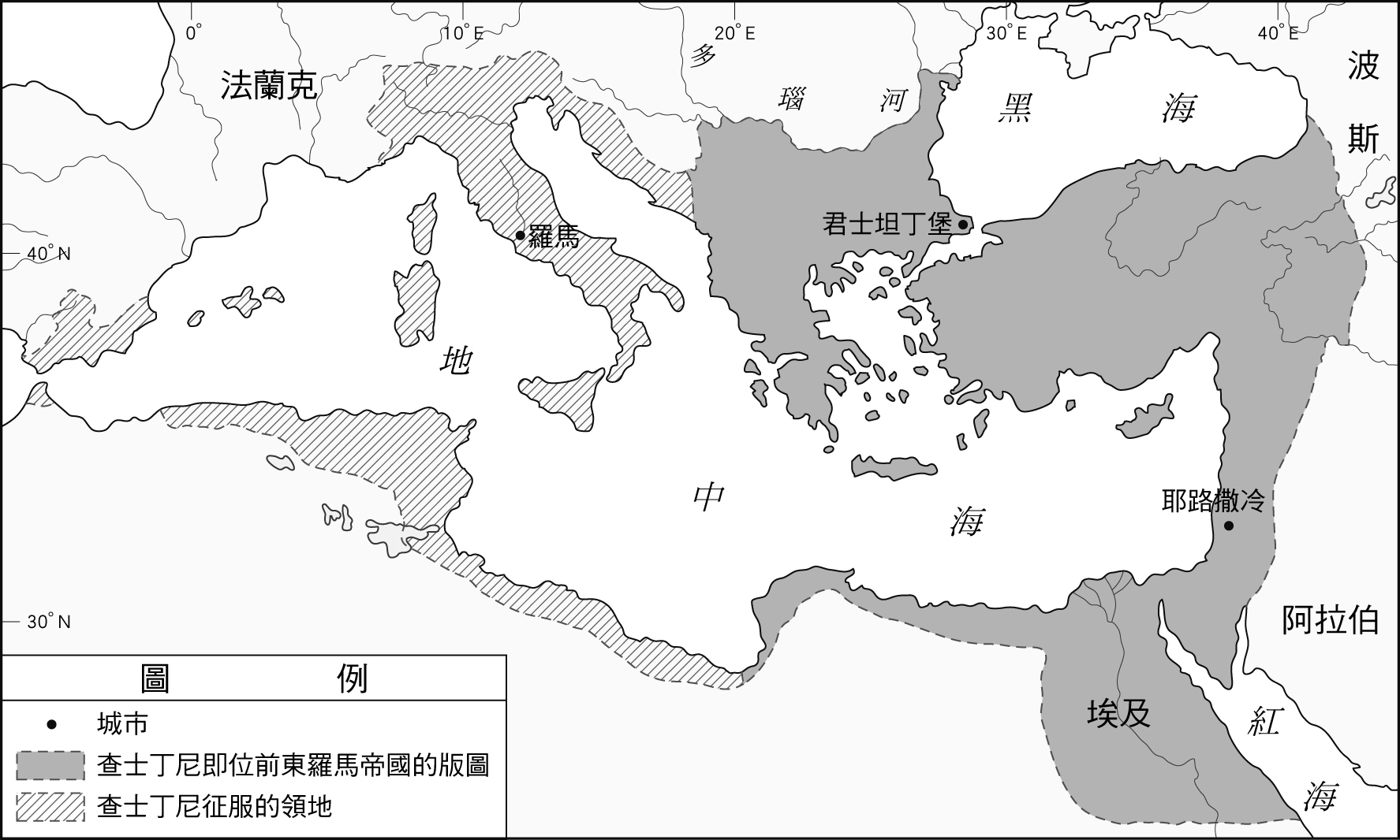 查士丁尼時期的東羅馬帝國疆域圖