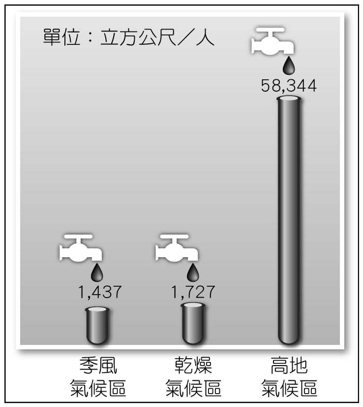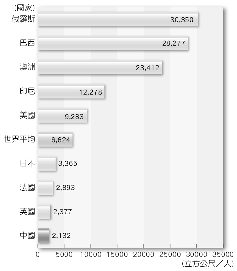 中國三大區平均每人擁有水資源量比較圖-2009年