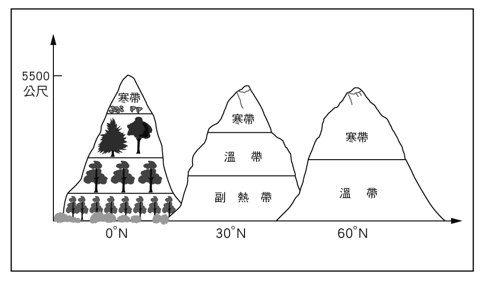 植被與氣候垂直分布示意圖