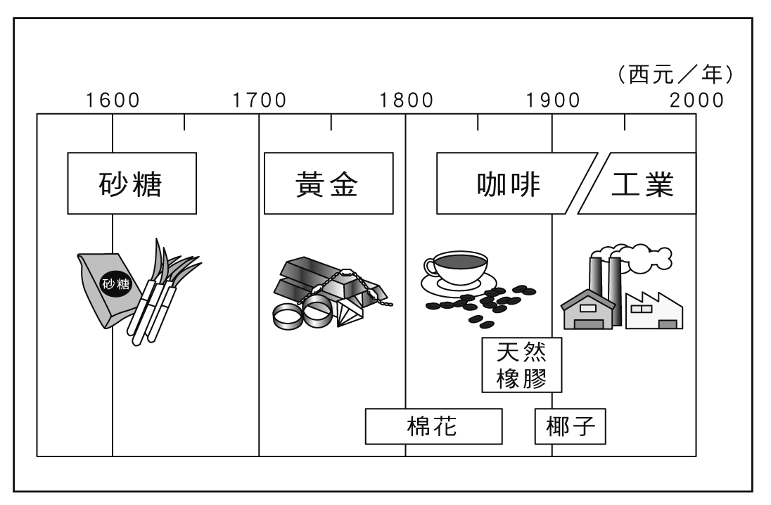 某國不同時期出口商品變化圖