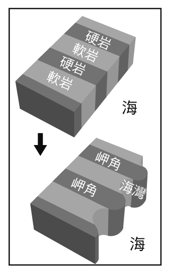 岬角灣澳形成示意圖