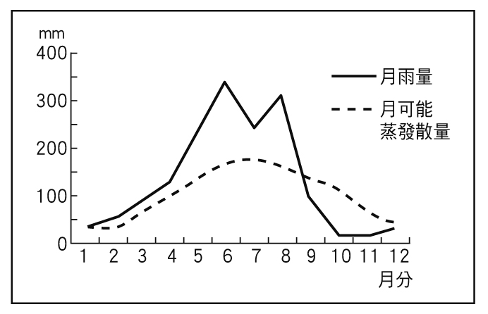 某地每月雨量及蒸發量圖