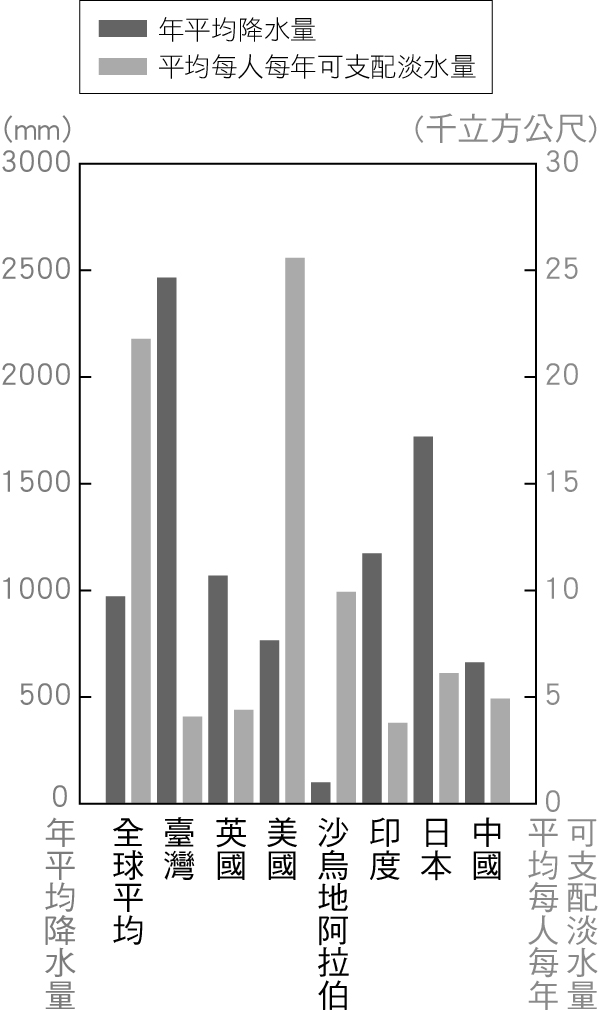 世界降水量與平均分配可得水量圖