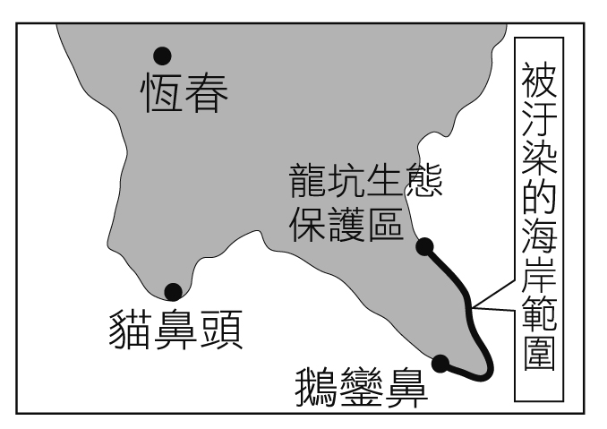 墾丁被汙染海岸範圍圖