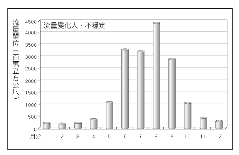 南部地區河川每月平均逕流量圖