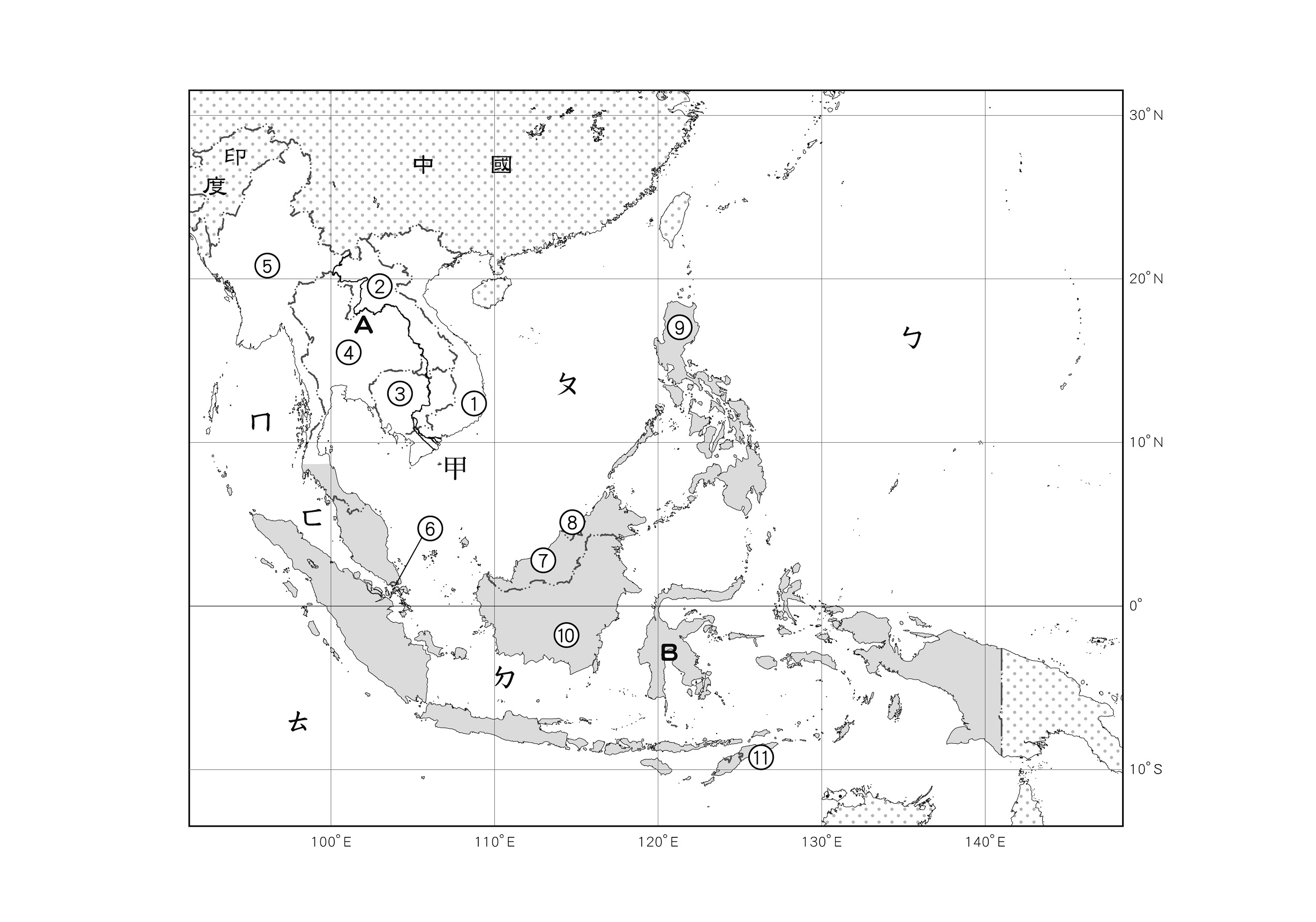 東南亞地形圖(空白無代號)