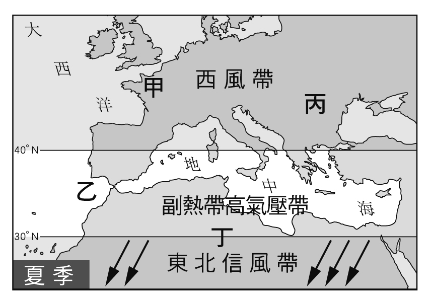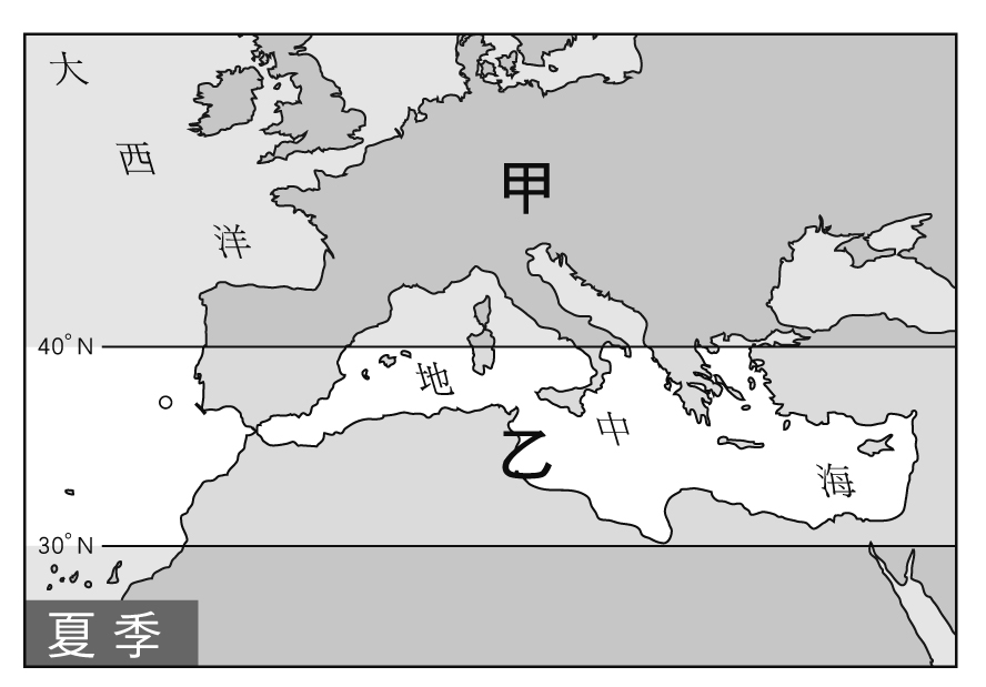 溫帶地中海型氣候夏季氣壓帶示意圖1